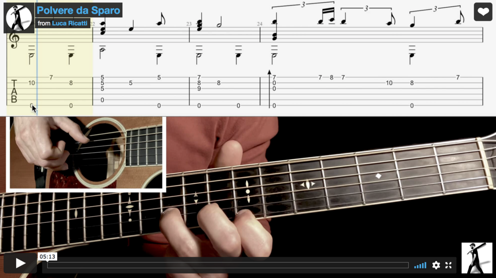 - Spartito con la Tablatura che scorre a tempo con k'esecuzione delle mani